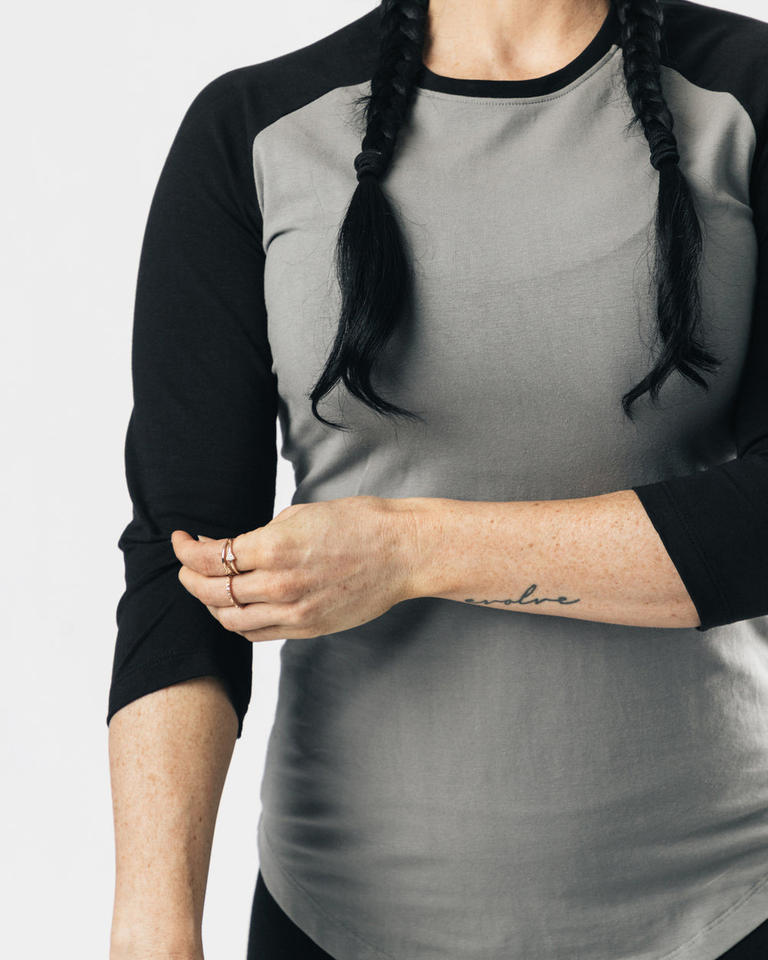 T-shirt femme coupe ajustée raglan 3 par 4 manches 100% coton T-Shirt personnalisé Logo bouffant impression Appliques décoration T-Shirt femme