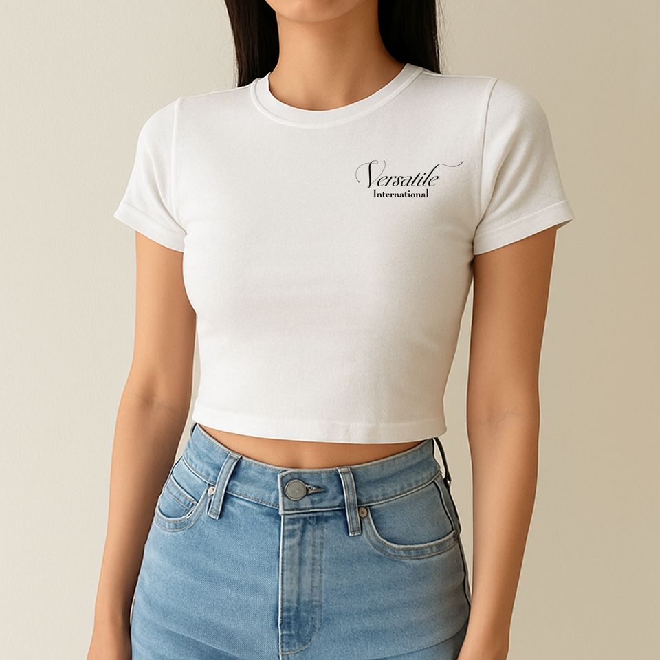 Haut court en polyester et coton doux pour femmes manches courtes Logo personnalisé impression graphique personnage ajusté Streetwear décontracté pour l'été