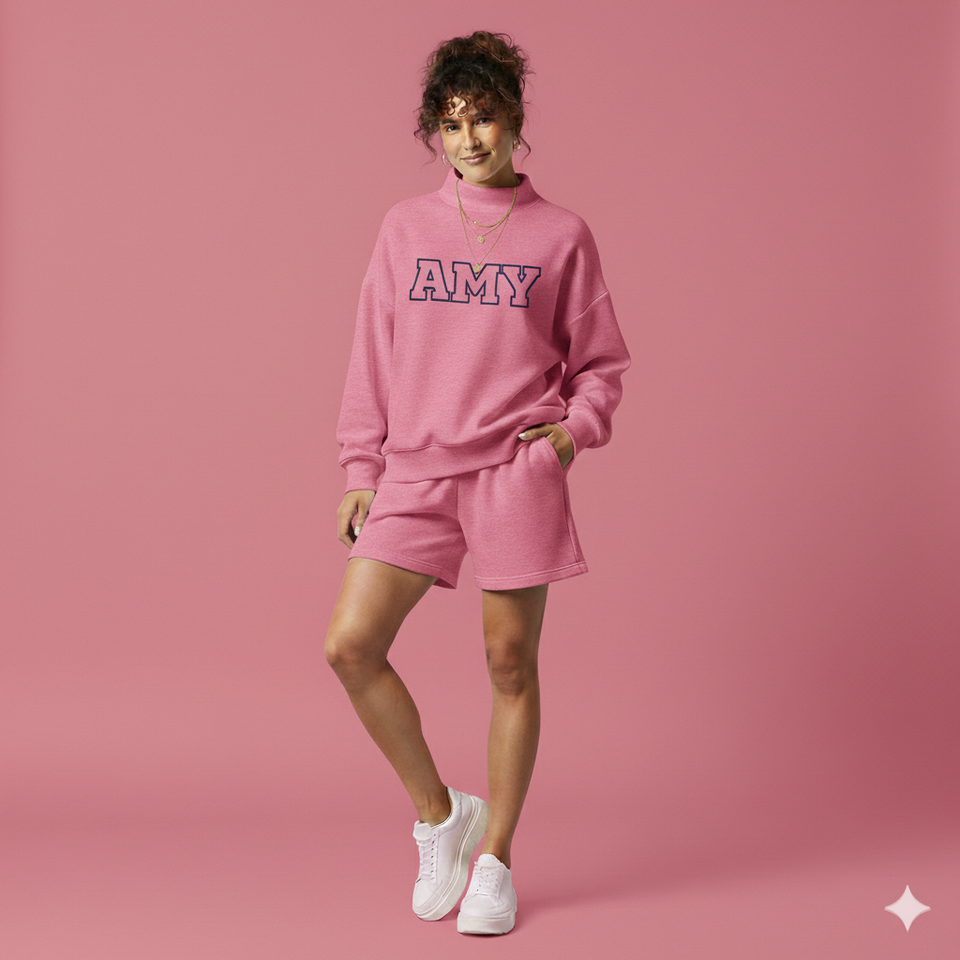 Ensemble décontracté deux pièces pour femme : haut côtelé doux à col montant et short à taille élastique, style streetwear, service OEM
