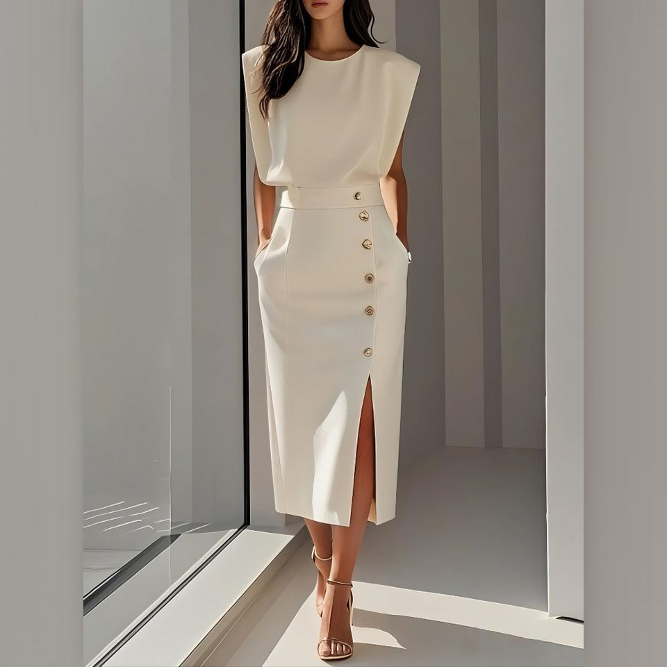 Robes pour femmes, couleur unie, col rond, taille cintrée, ourlet fendu, boutons métalliques, mode