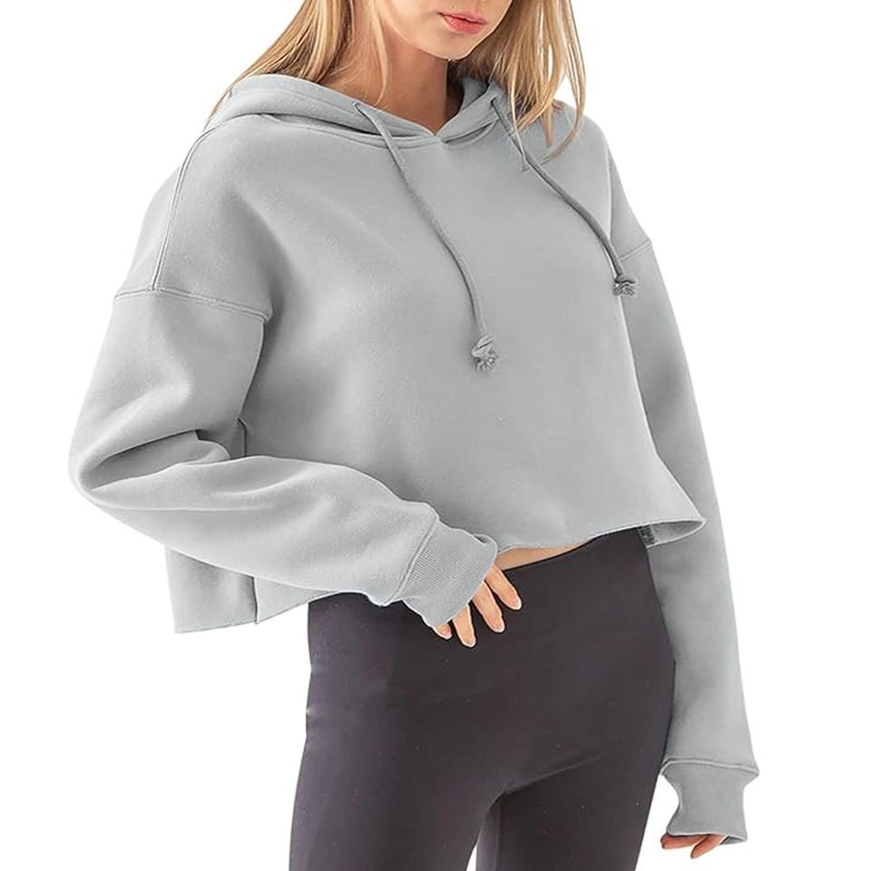 Crop top uni pour femme, coupe classique, sweat-shirt en molleton de coton, sweat-shirt à manches longues de haute qualité