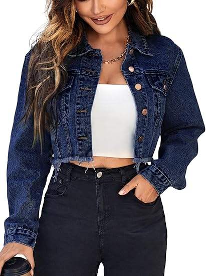 Veste en jean pour femme, unie, d'hiver, avec logo sur le devant, respirante, tricotée, à ourlet brut, à manches longues, boutonnée, avec poches, coupe classique