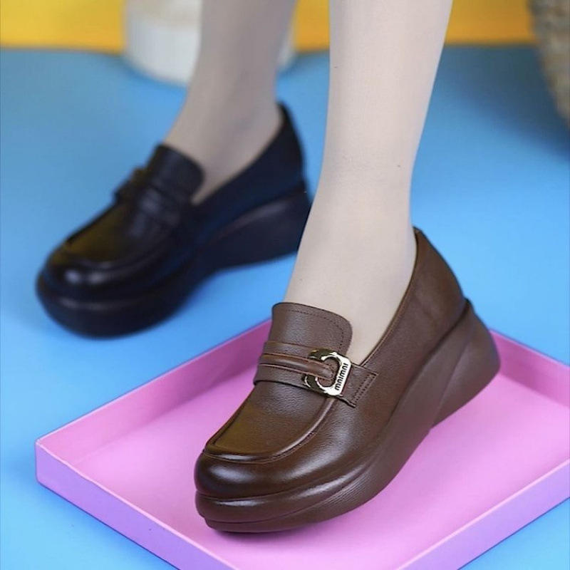 Women's Spring Flats Genuine Cowhide Leather Comfortable Casual Shoes Retro First Layer Thick Bottom Small Size New Platform