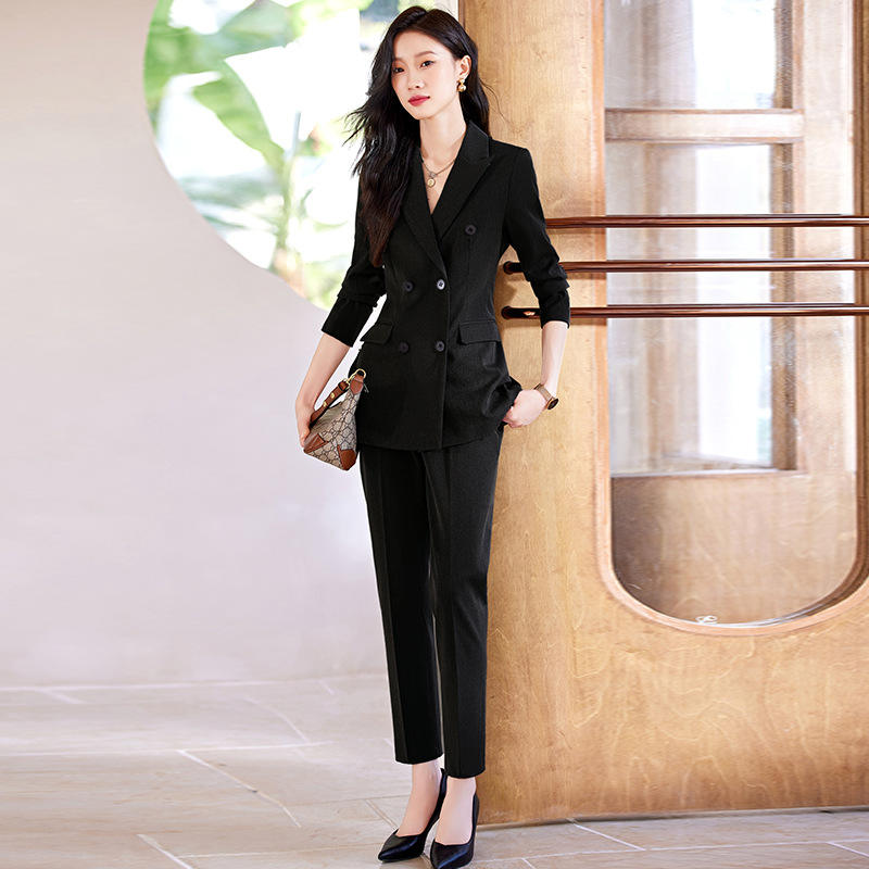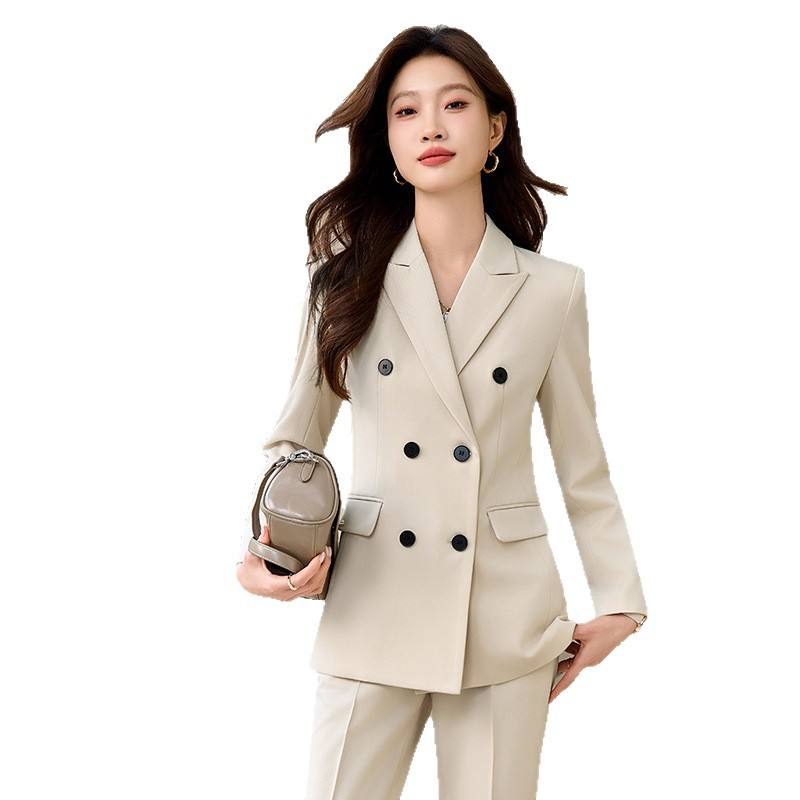 Women's Spring Suit Set Full Sleeve Notched Collar Anti-Wrinkle Formal Work Wear Apricot Color Professional Attire