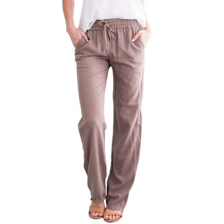 Femmes printemps été coton lin décontracté cordon cordon grande taille pantalon en gros européen américain coton lin pantalon