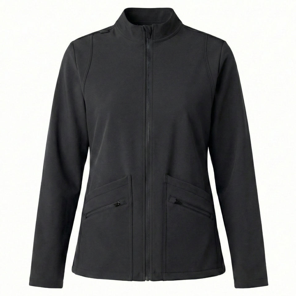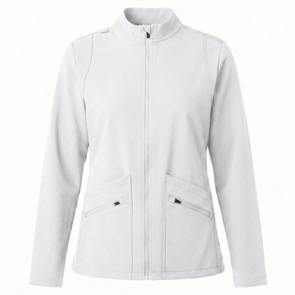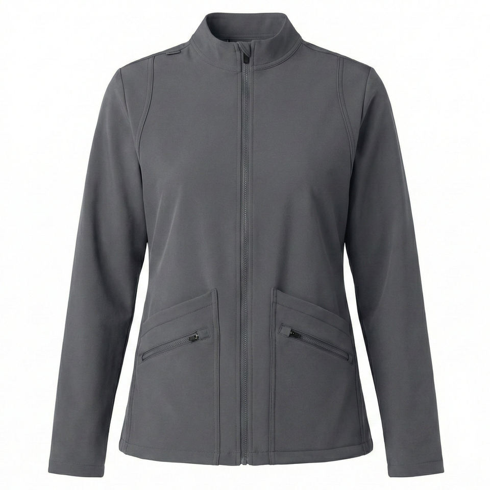 Blouse de travail élégante et personnalisable pour femmes, à fermeture éclair intégrale, en tissu extensible haute performance, pour le personnel infirmier, avec design personnalisé, prix de gros