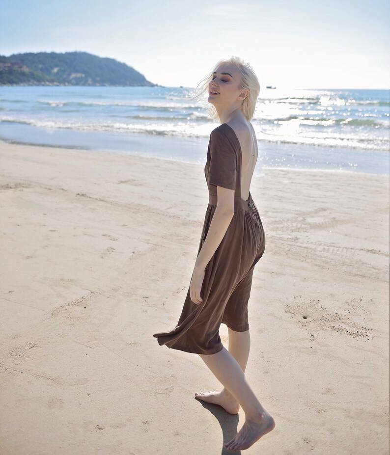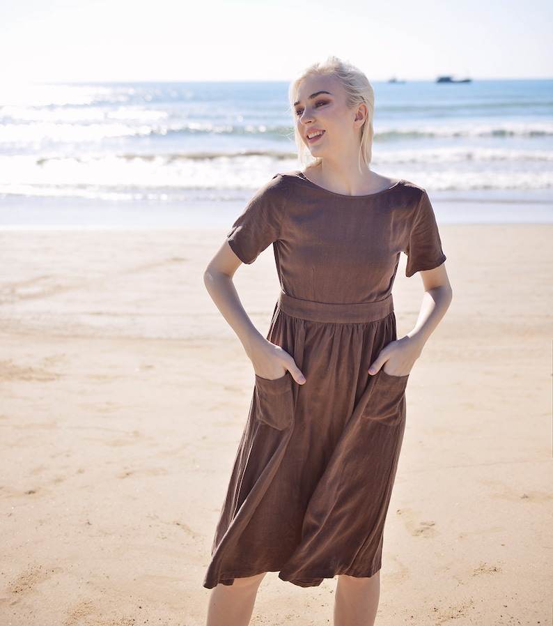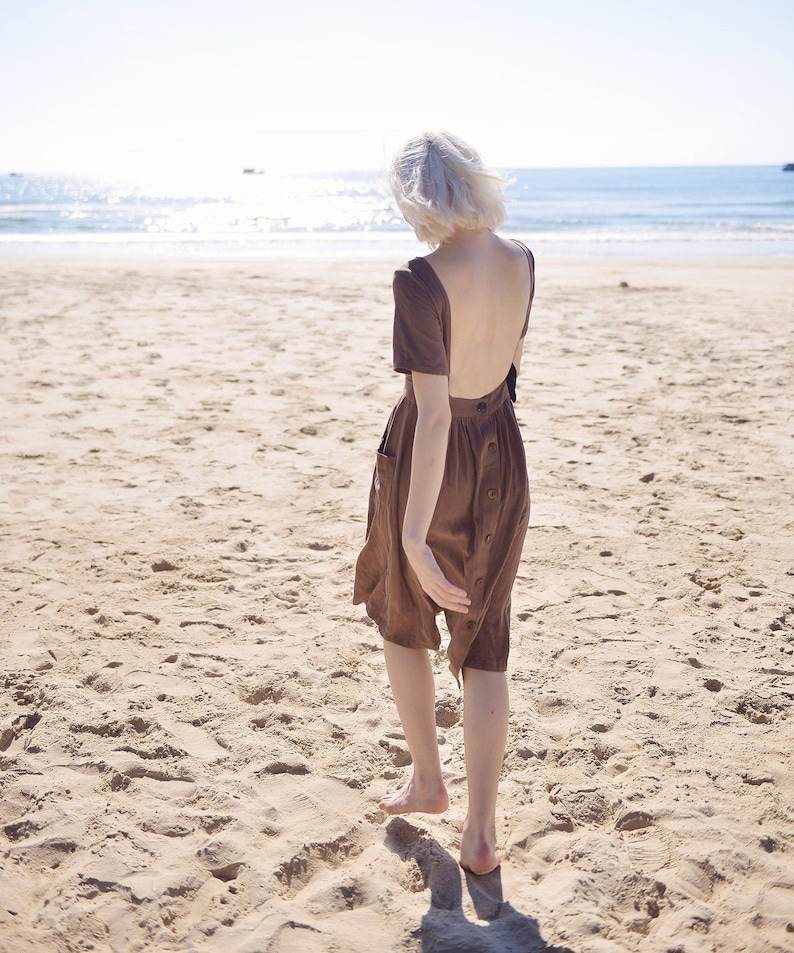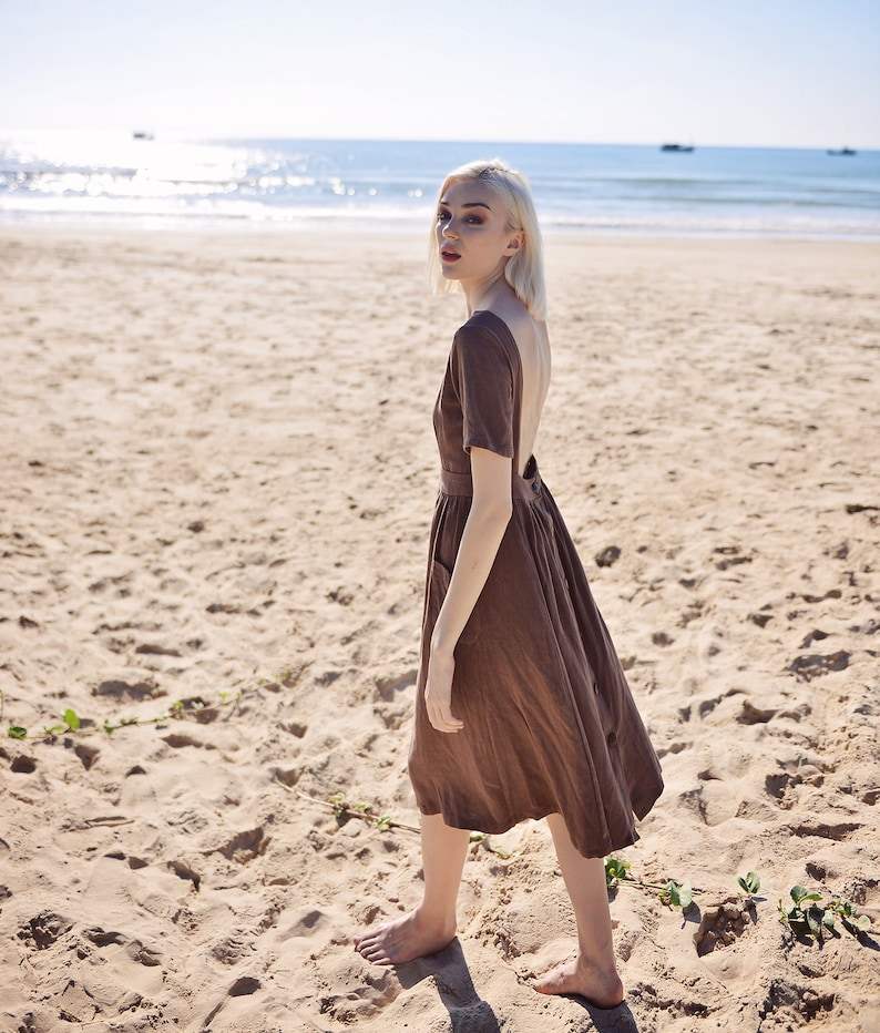 Women's Stylish Linen Dress with Openback Design Soft Natural Fabric Elegant and Washable with Pockets