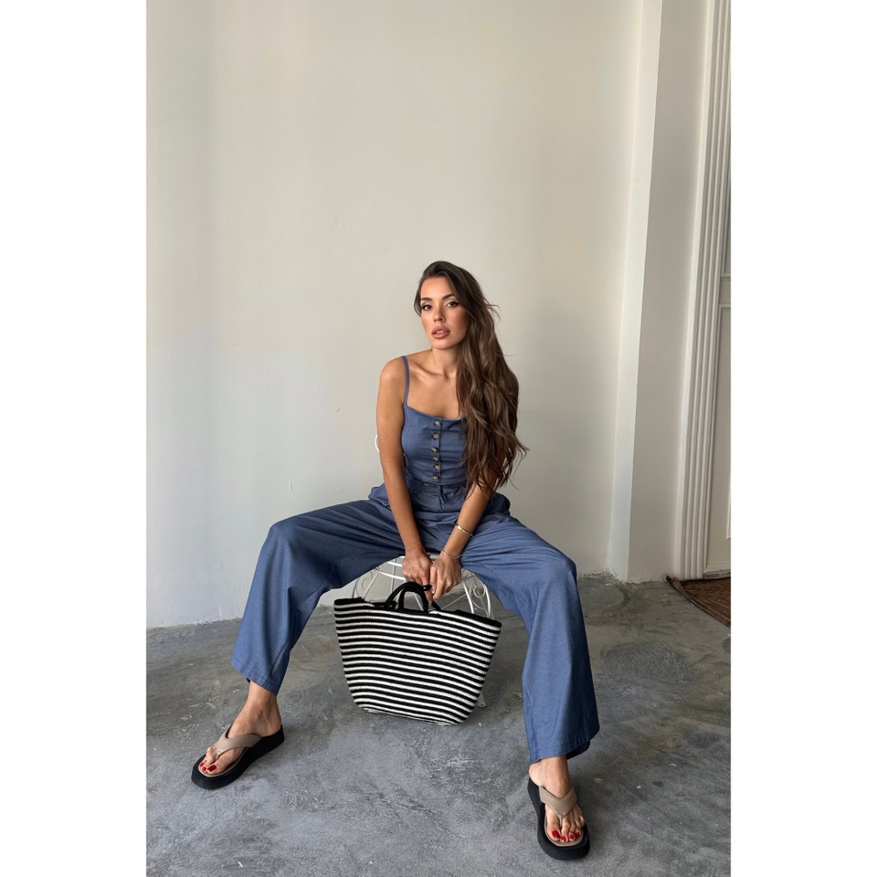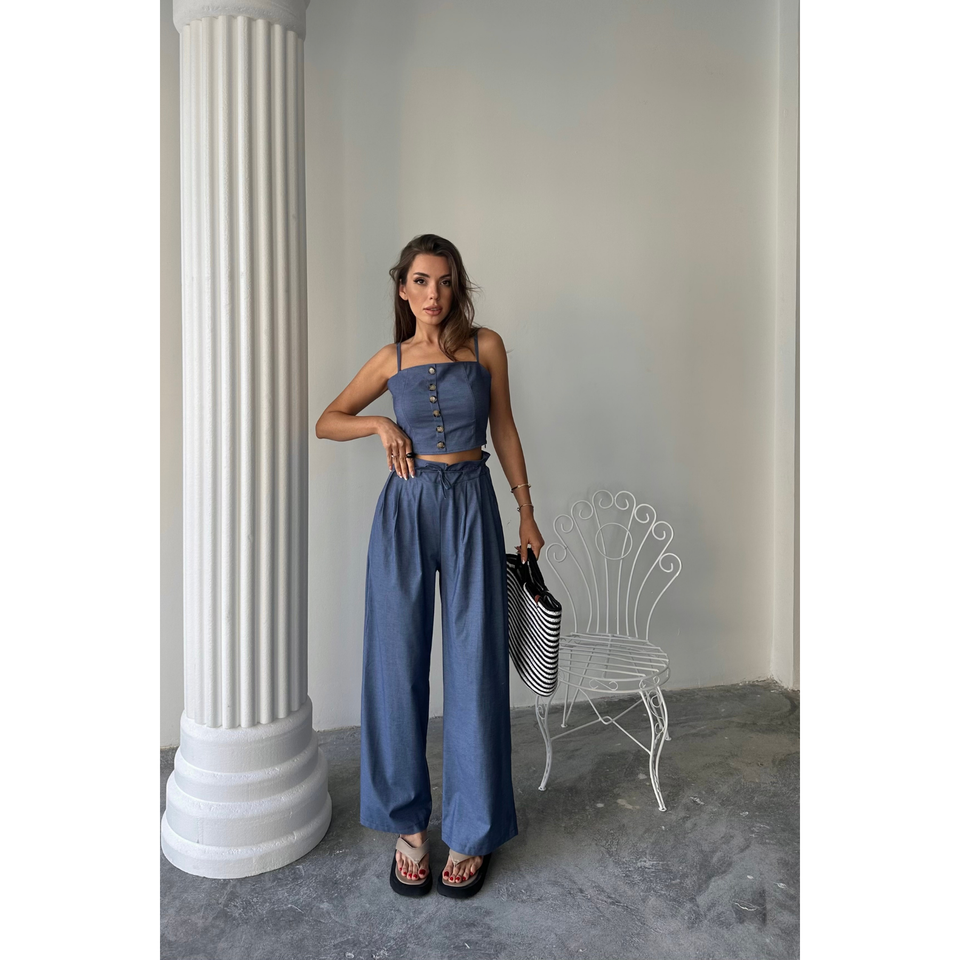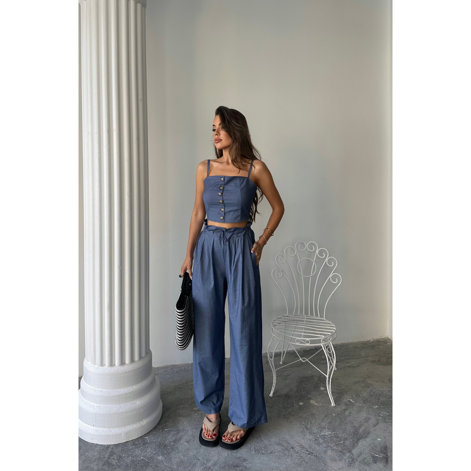 Ensemble 2 pièces d'été pour femme en indigo pour TENCEL : Crop Top & Pantalon HALVAR, Blouse sans bretelles & Short ample