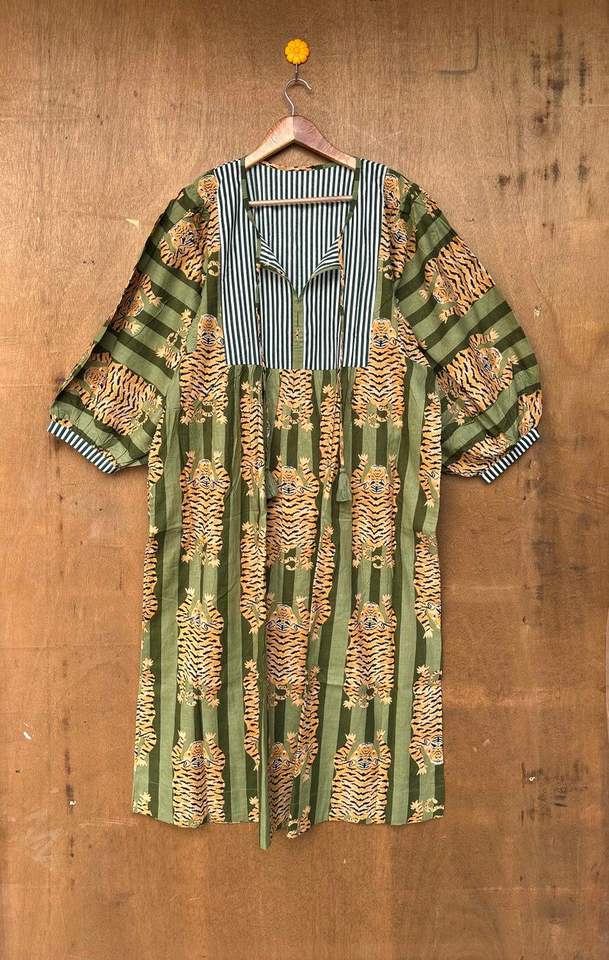 Women's Summer Bohemian Hippie Midi Mini Dress Casual Cotton with Deep Neck Block Print Natural String Closer for Weddings Girls