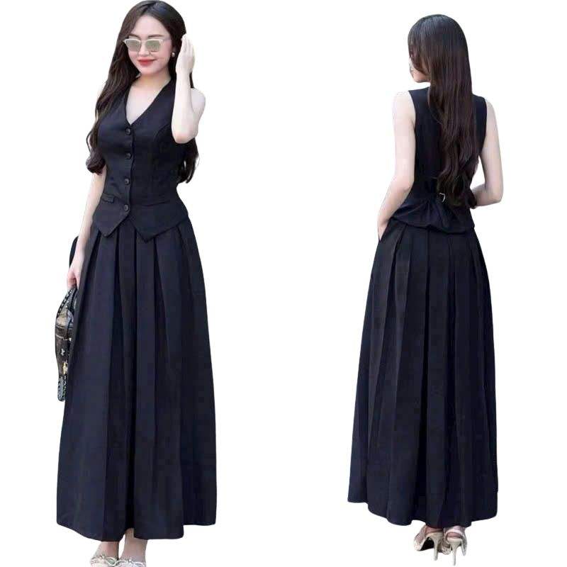 Women's Summer Casual Suit Set New Fashion Single Breasted V-Neck Vest with High Waist Pocketed Wide Leg Pants