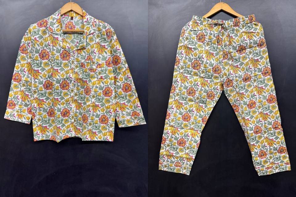 Ensemble de pyjama pour femmes en coton pur respirant à taille élastique et col en V à fleurs pour l'été | Vêtements de nuit doux de haute qualité