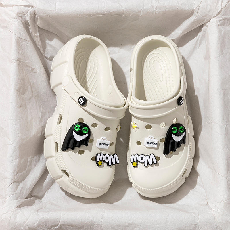 Women's Summer New Style Platform Hollow Shoes Outdoor Wear Slippers Cushioning Feeling Closed Toe Thick-soled Height Increasing