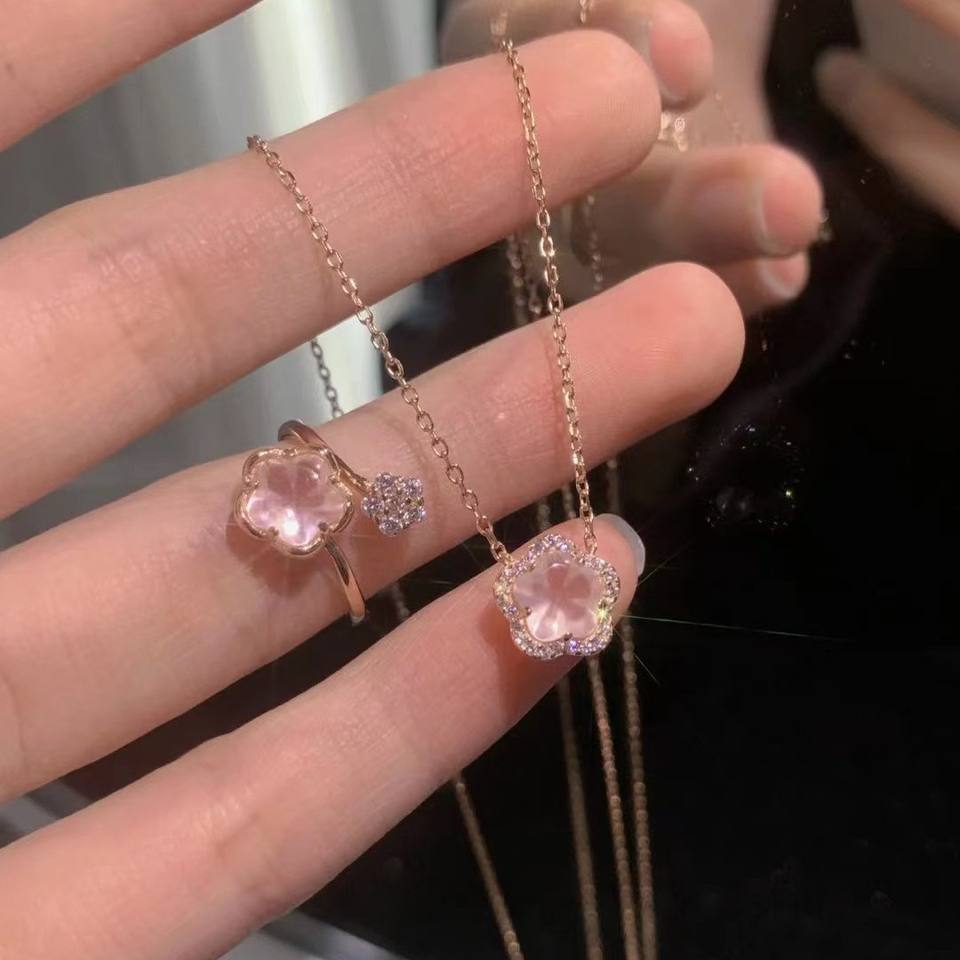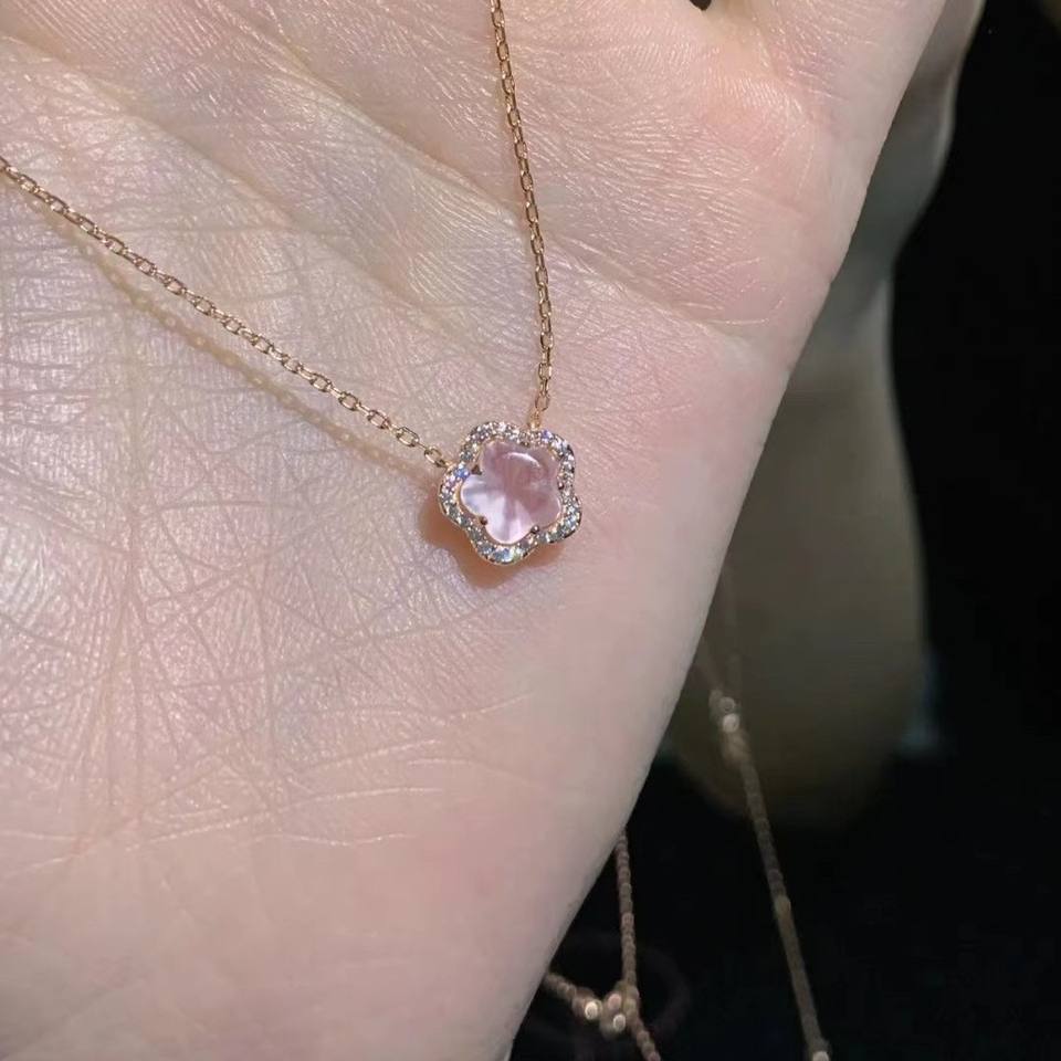 Collier pendentif en argent pur S925 pour femme, style féerique tendance, cœur de fille douce, fleur de cerisier avec diamant rose