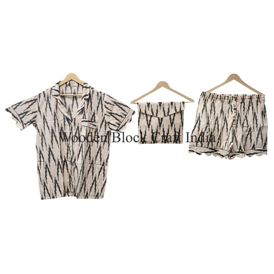 Ensemble de pyjama court d'été pour femmes, imprimé à la main, en coton, vêtements de détente, vêtements de nuit doux, avec des détails faits à la main pour femmes