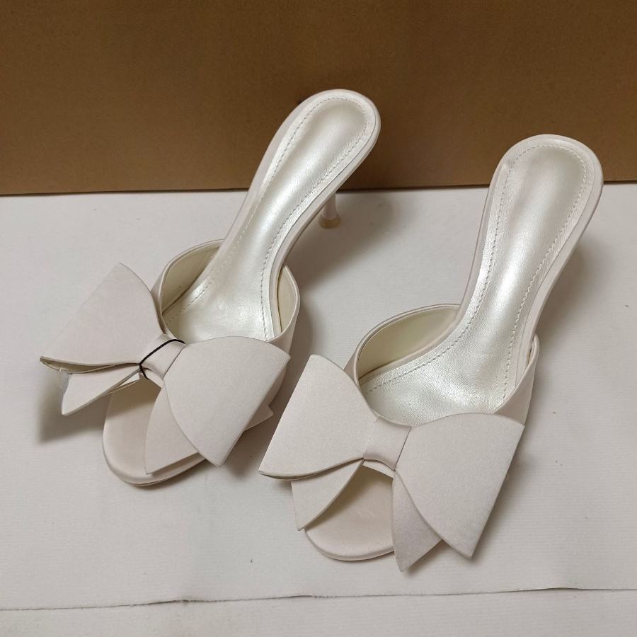 Chaussures à talons hauts pour femmes, style féerique sexy, à bout ouvert, à enfiler, couleur unie, avec nœud, talon fin, pour l'été et le printemps