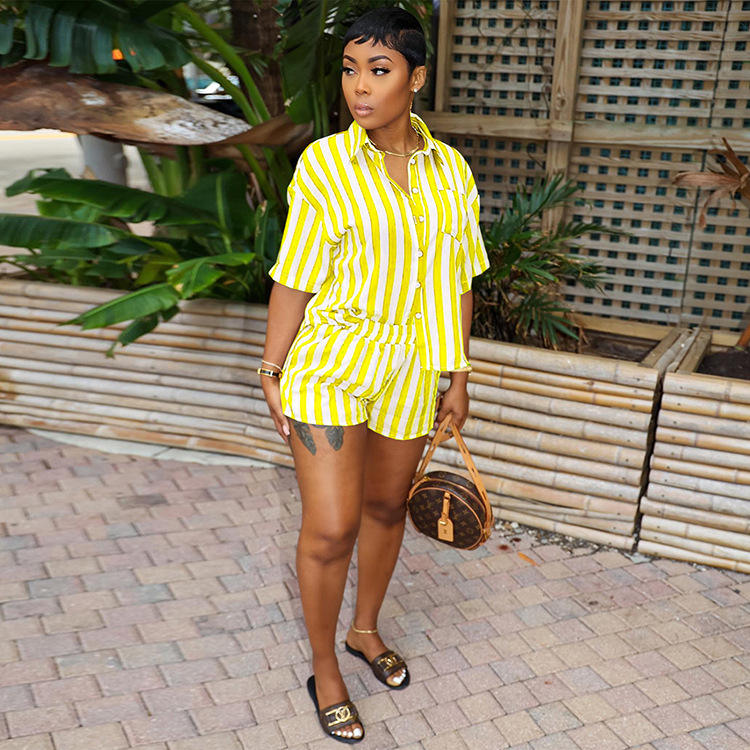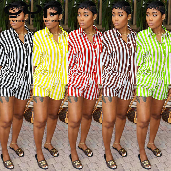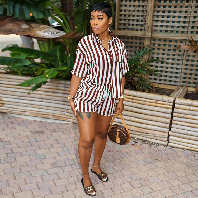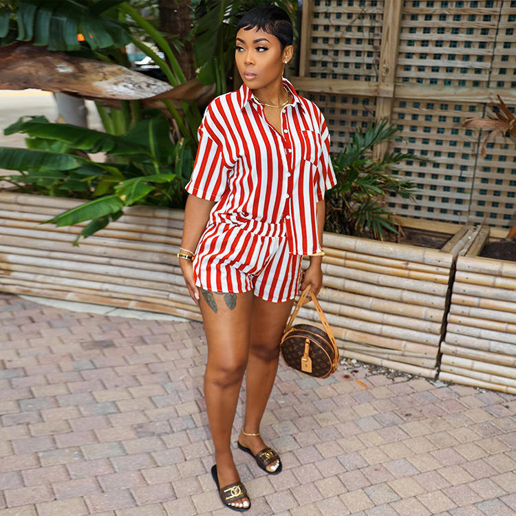 Ensemble deux pièces d'été pour femmes au-dessus du genou haut court et short de butin tenues de vacances en dentelle hawaïenne imprimé rayé Technique lavée