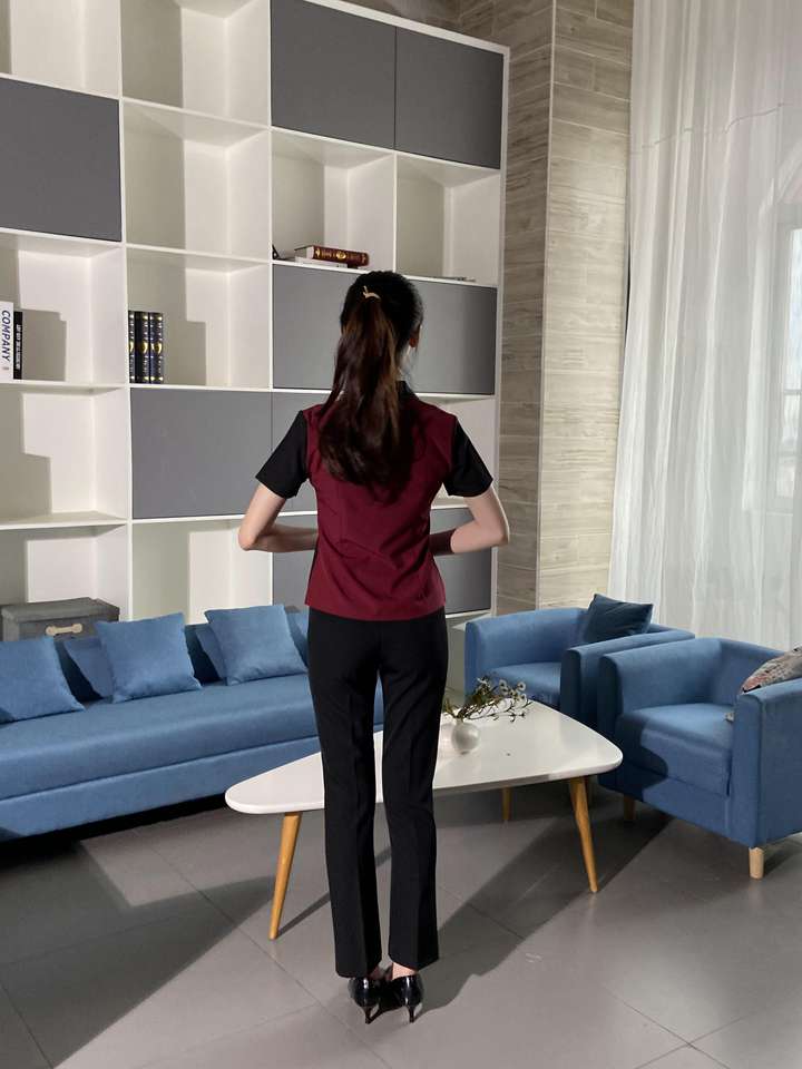 Ensemble d'uniformes de travail d'été pour femmes 3 pièces Crop Vest Blazer et pantalon à jambes larges Button-V Neck Crop pour les tenues de réception d'hôtel