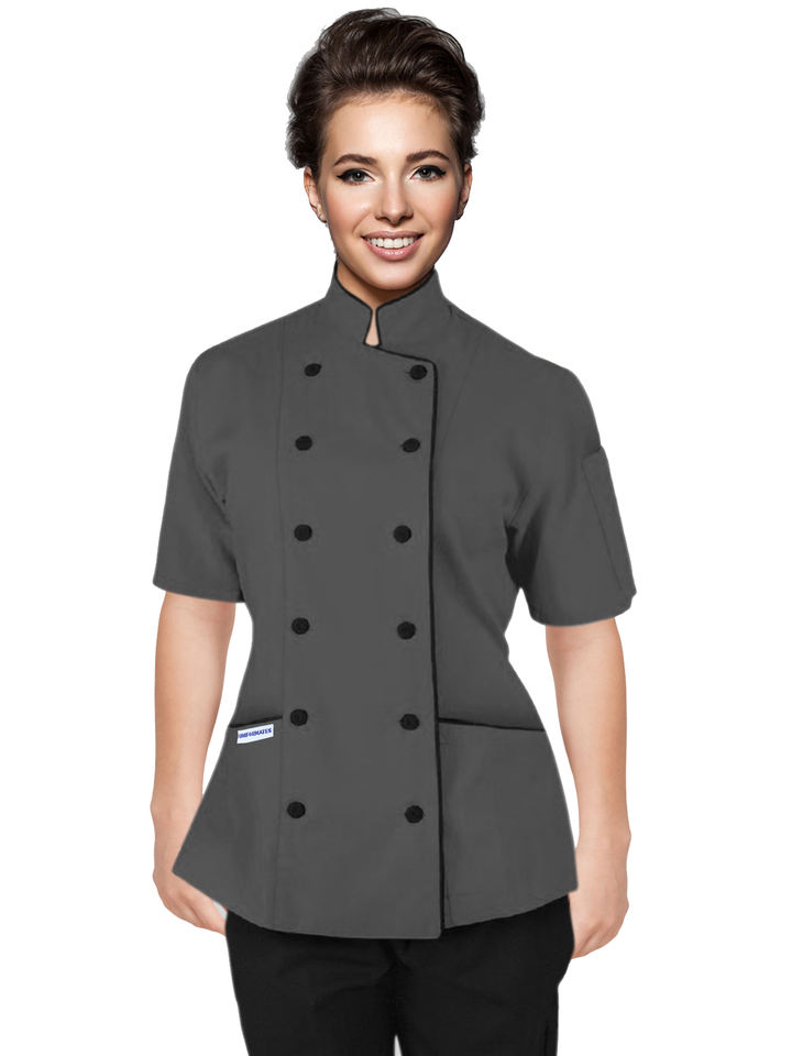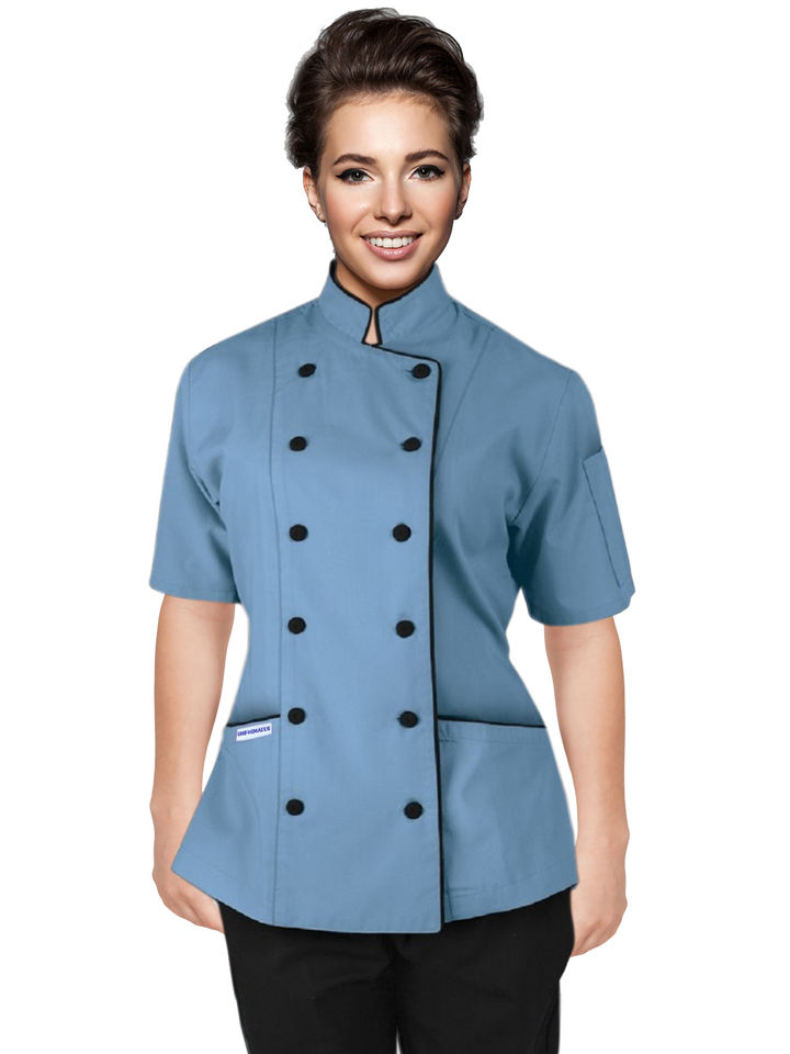 Professional Women's Culinary Short-Sleeve Chef Coat Jacket Poly Coton Custom Colors OEM Tailored Fit Uniform Restaurants Bars
