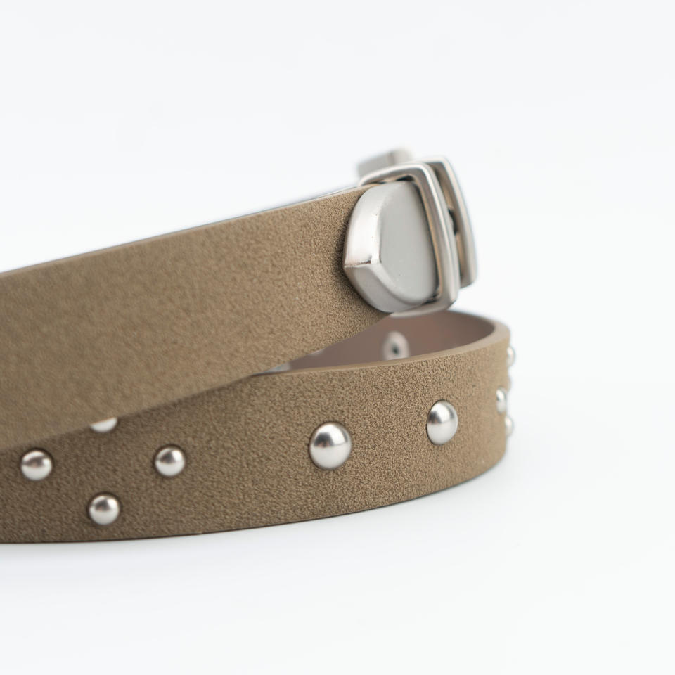 Women's Taupe Suede Leather Belt with Silver Stud Decorations