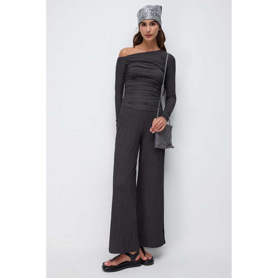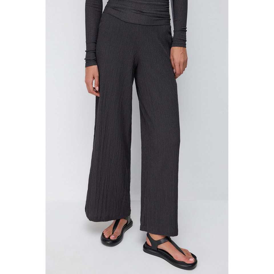 Pantalon large pour femme, aspect texturé, 100% polyester, avec coutures invisibles et autres fermetures
