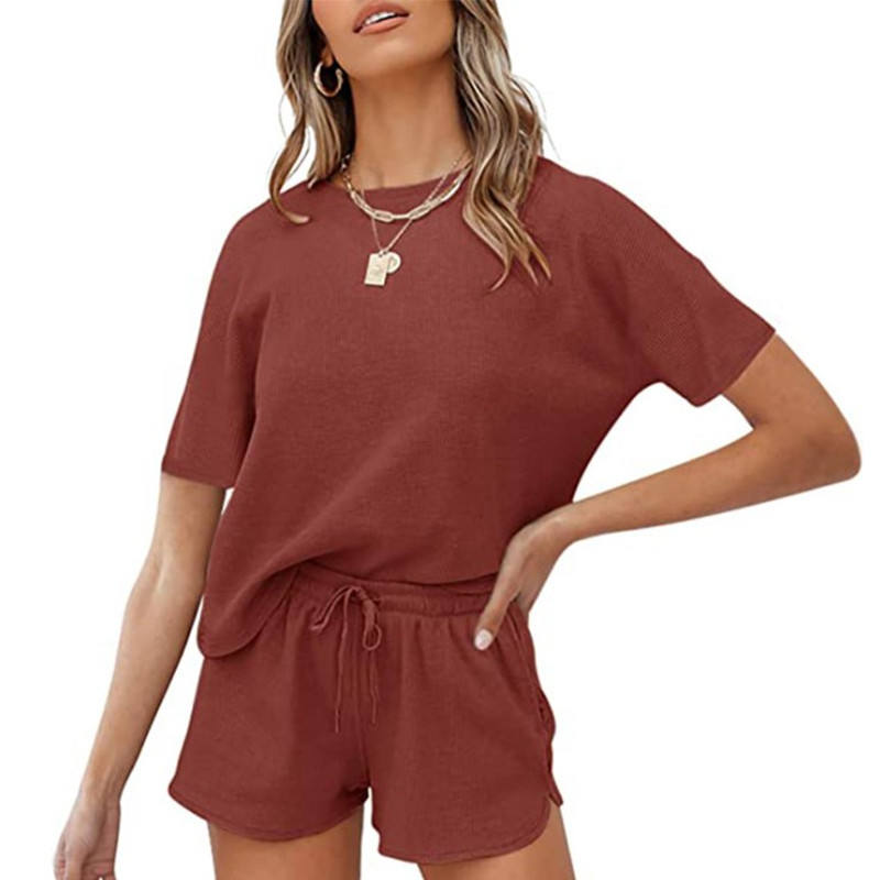 Product Name:Women Short Sleeve Waffle Pajama Sets