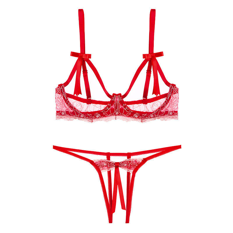 Ensemble sexy trois pièces pour femme, fin, à motifs unis, avec culotte ouverte, soutien-gorge à armatures, lingerie sexy élégante, fabriqué en Chine