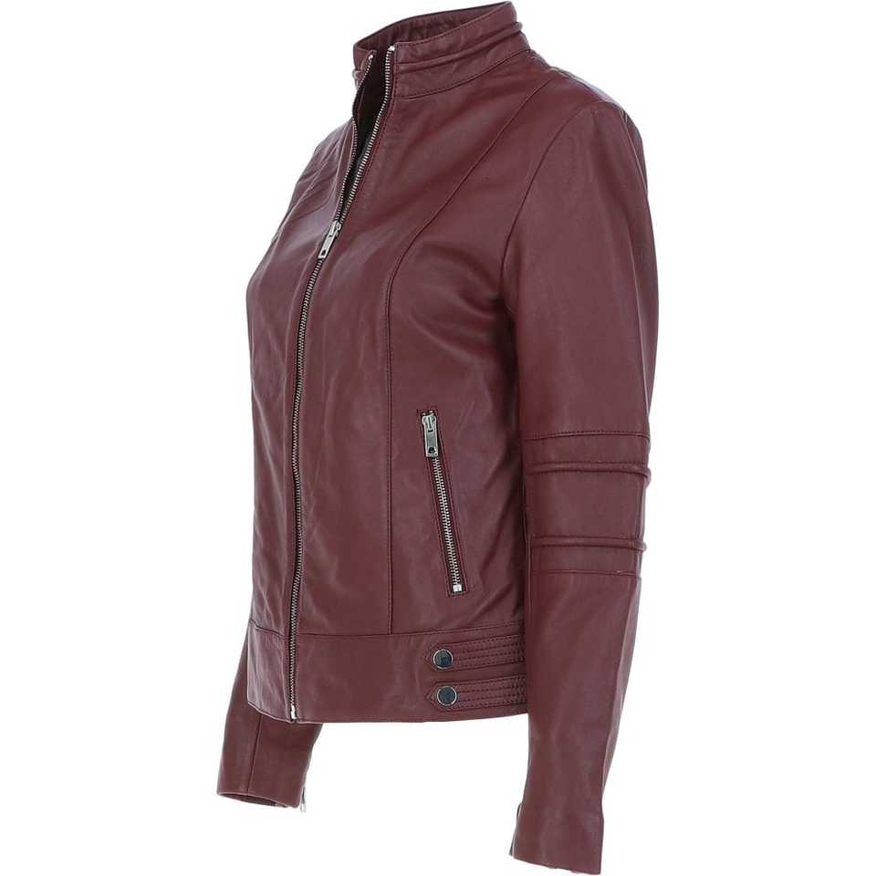 Women's Top Trending Custom Autumn Winter Leather Jacket with Solid Turn Collar Full Sleeves & Breathable Satin Lining