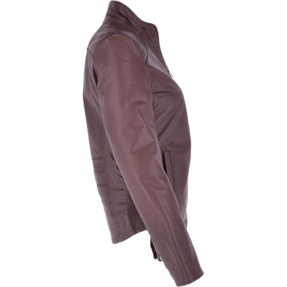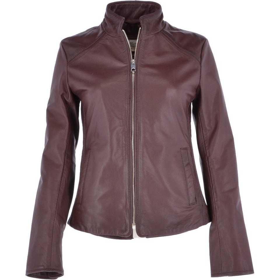 Femmes haut tendance personnalisé automne hiver vestes en cuir solide col tournant conception manches longues respirant doublure en Satin