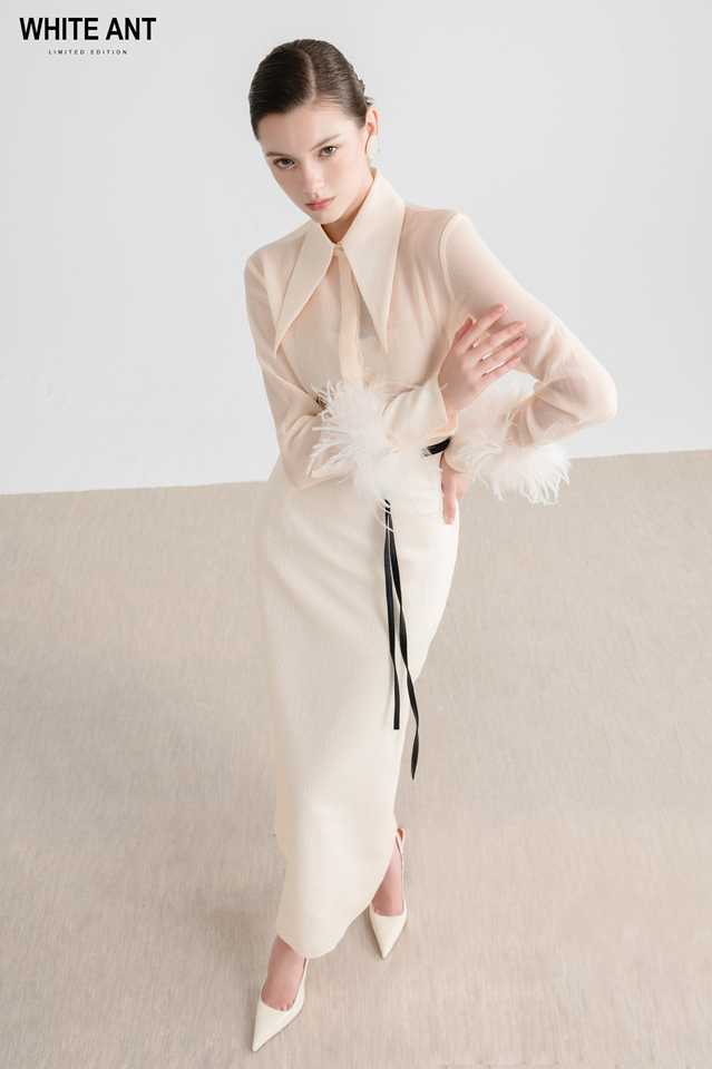 Women's Tops and Blouses Best Price Long Sleeves Esber Long Sleeve Feather Blouse Custom Packaging Whiteant Manufacturer