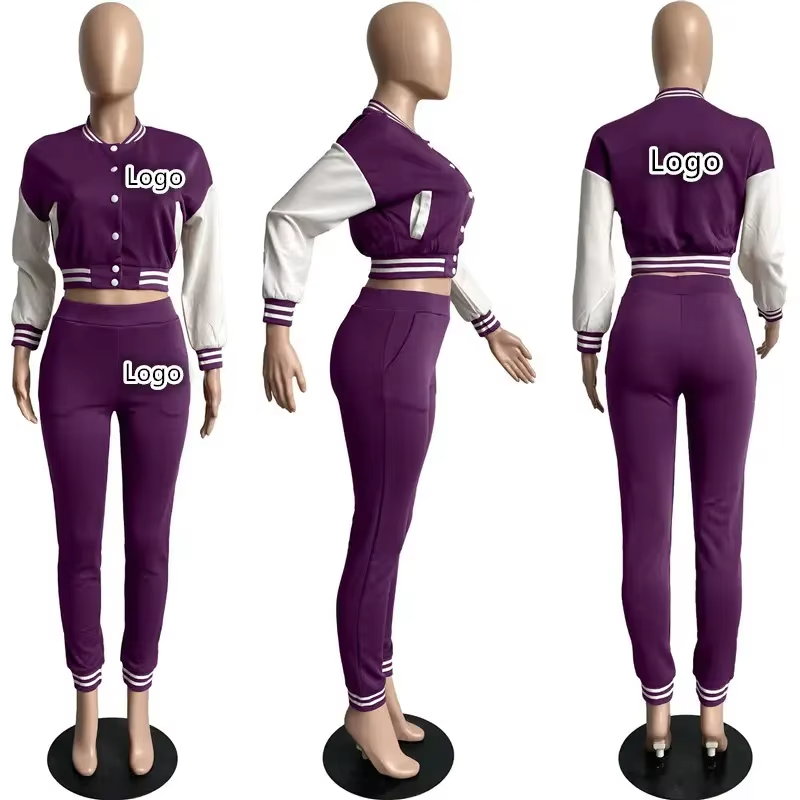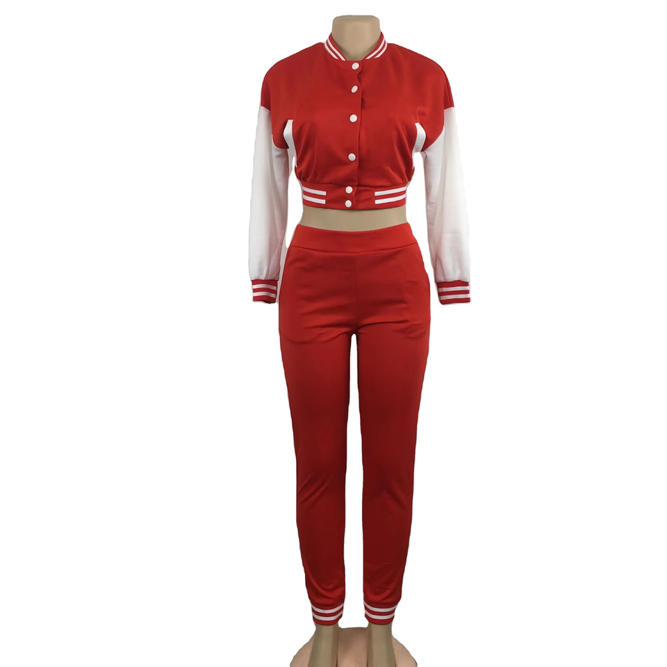 Ensemble de survêtement pour femme, bouton unique, uni, décontracté, sport, deux pièces, polyester/coton, polaire, coupe-vent, respirant, toutes saisons