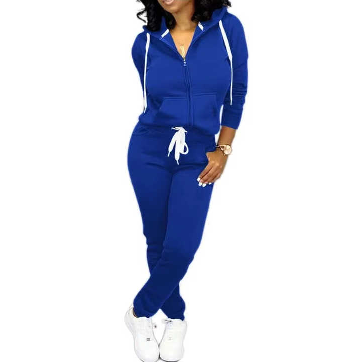 Survêtements pour femmes deux pièces tenues femmes décontracté bleu couleur survêtements femmes ensemble fermeture éclair sweat à capuche sweat avec poches