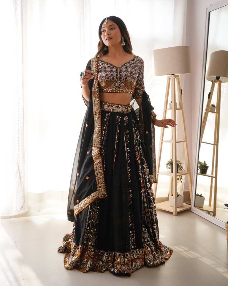 DUPATTA:Fendi with Sequins and Embroidered work and designer lace border