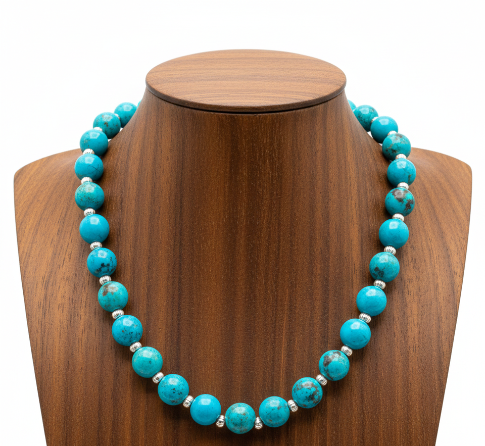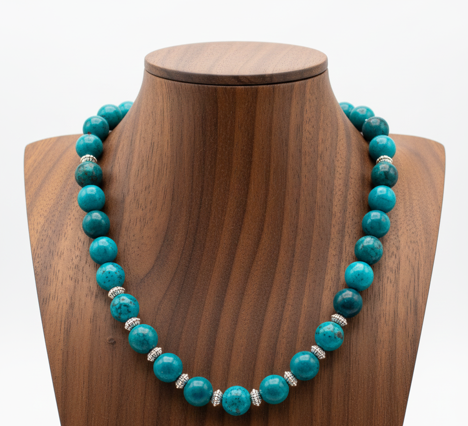 Collier tendance pour femme en argent tibétain doré de 18 pouces avec perles géométriques, chrysocolle naturelle de haute qualité et perle d'eau douce – Idéal comme cadeau