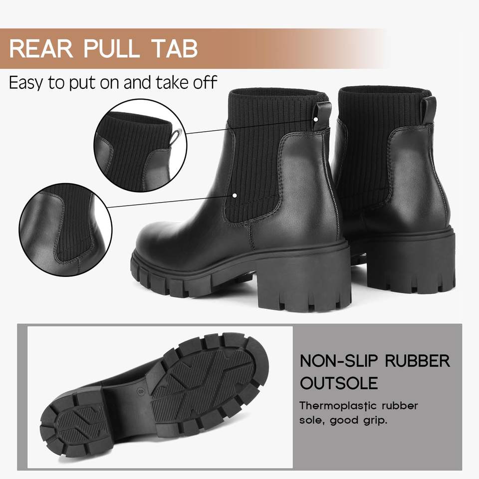 Women's Trendy Chelsea Boots with Chunky Mid Heel and Lug Sole Comfortable Elastic Ankle Booties Thermal Snow Boots for Winter