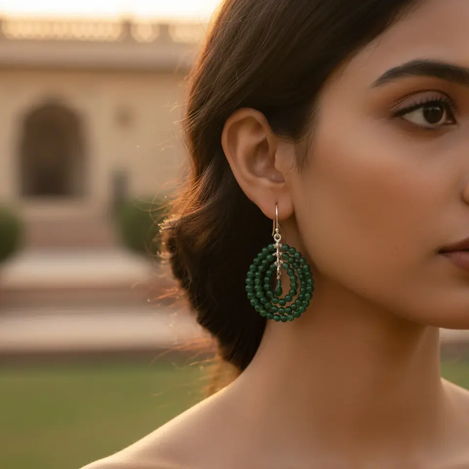 Women's Trendy Emerald Bead Drop Earrings Religious Style Hoop Design Flower Pattern Stainless Steel Brass Pearl for Parties