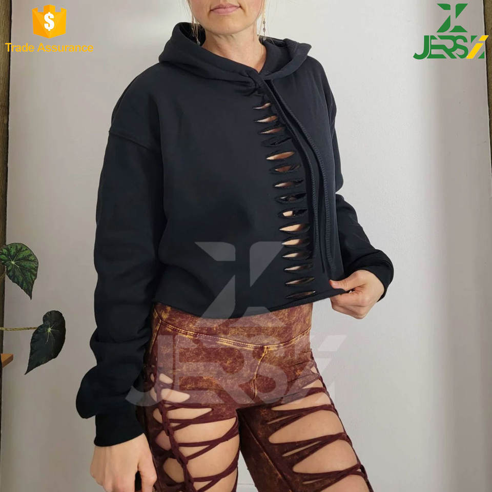 Keywords:Women's sliced crop hoodie Trendy cropped hoodie
