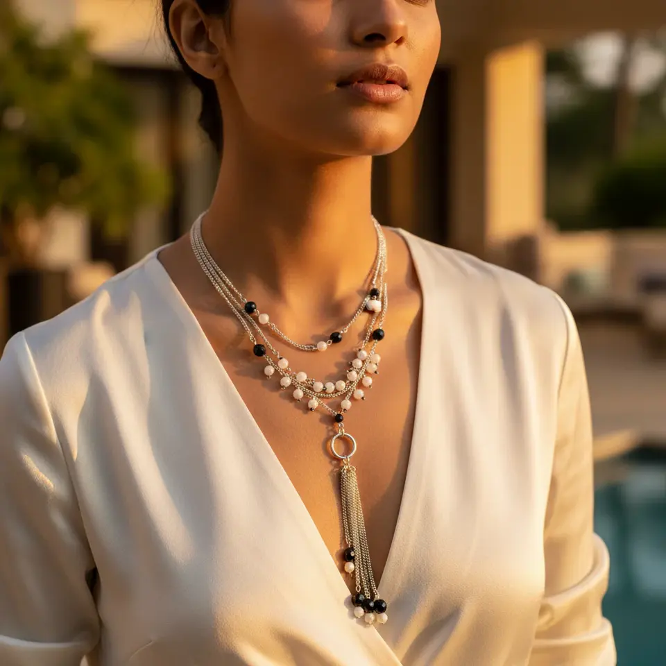 Women's Trendy Silver Beaded Pendant Necklace Gold Plating Vintage Style Geometric Number-shaped Buddhism Religious Rope Chain