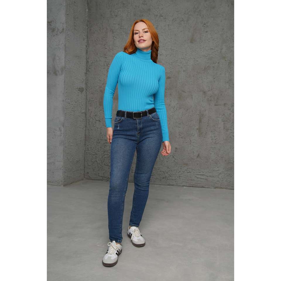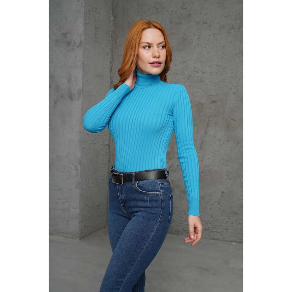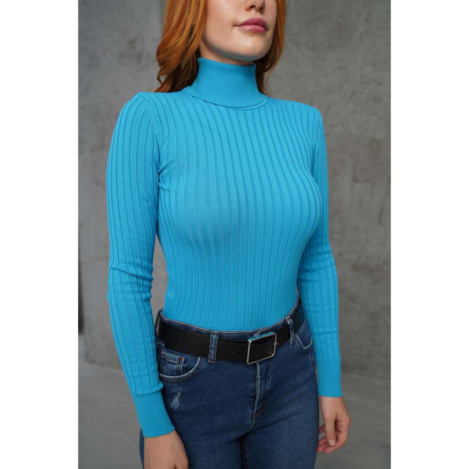 Pull en maille côtelé à col roulé turquoise pour femme - Vente en gros