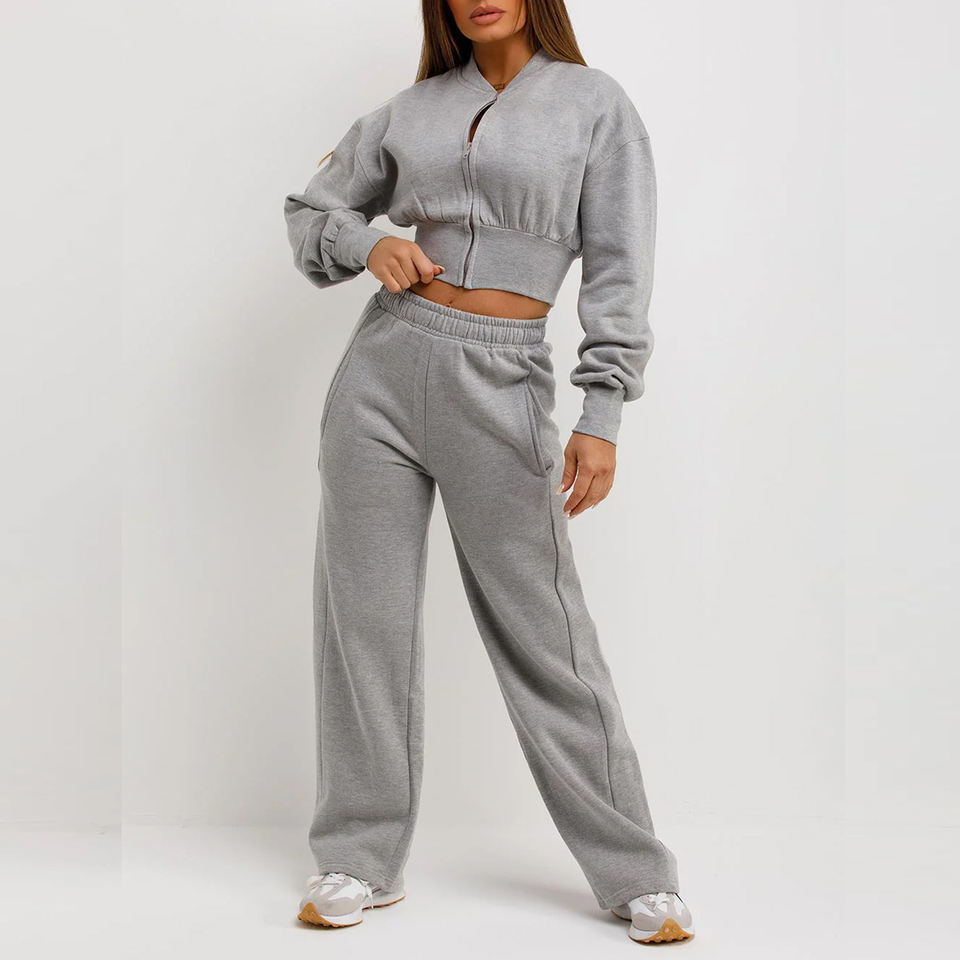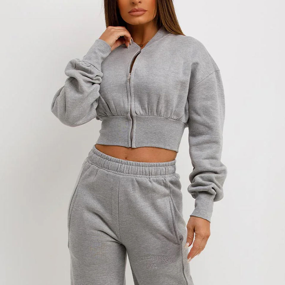 Women's Ultra Trendy Sporty Fleece Tracksuit Crop Hoodie Jogger Set Casual for Gym Workouts Relaxing Solid Pattern Tracksuits