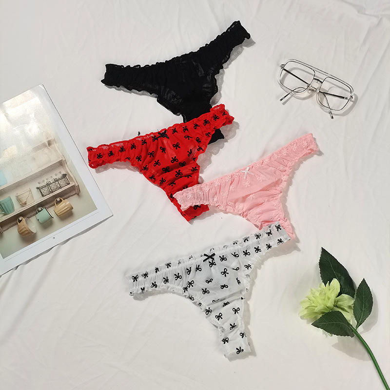 Sous-vêtements pour femmes, dentelle à volants, maille transparente, string sexy, vêtements de mode pour femmes