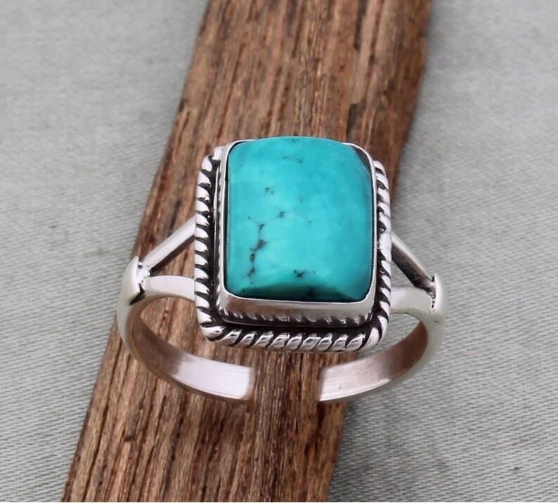 Bague en pierre précieuse Boho Turquoise pour femme en argent sterling massif à la main pour anniversaire de mariage chrétien