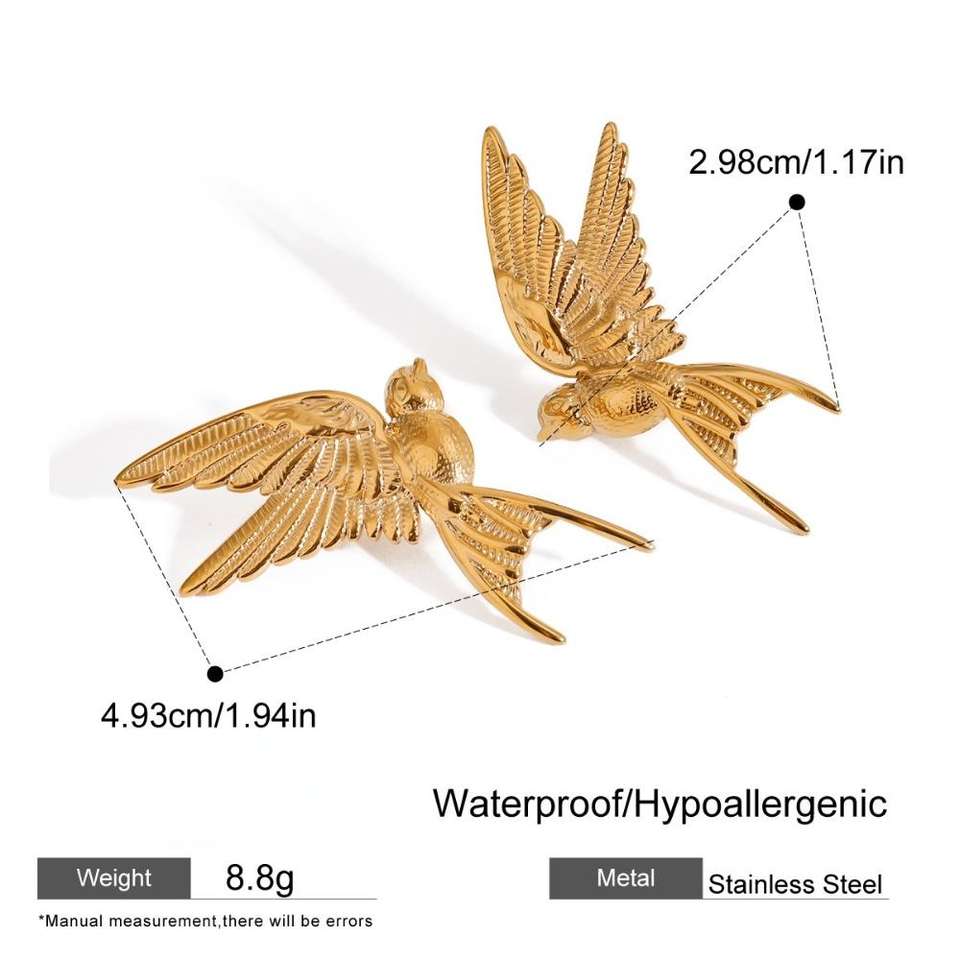 Boucles d'oreilles rétro hirondelle uniques pour femmes en acier inoxydable étanche bijoux de mode à la mode avec conception de colombe de la paix