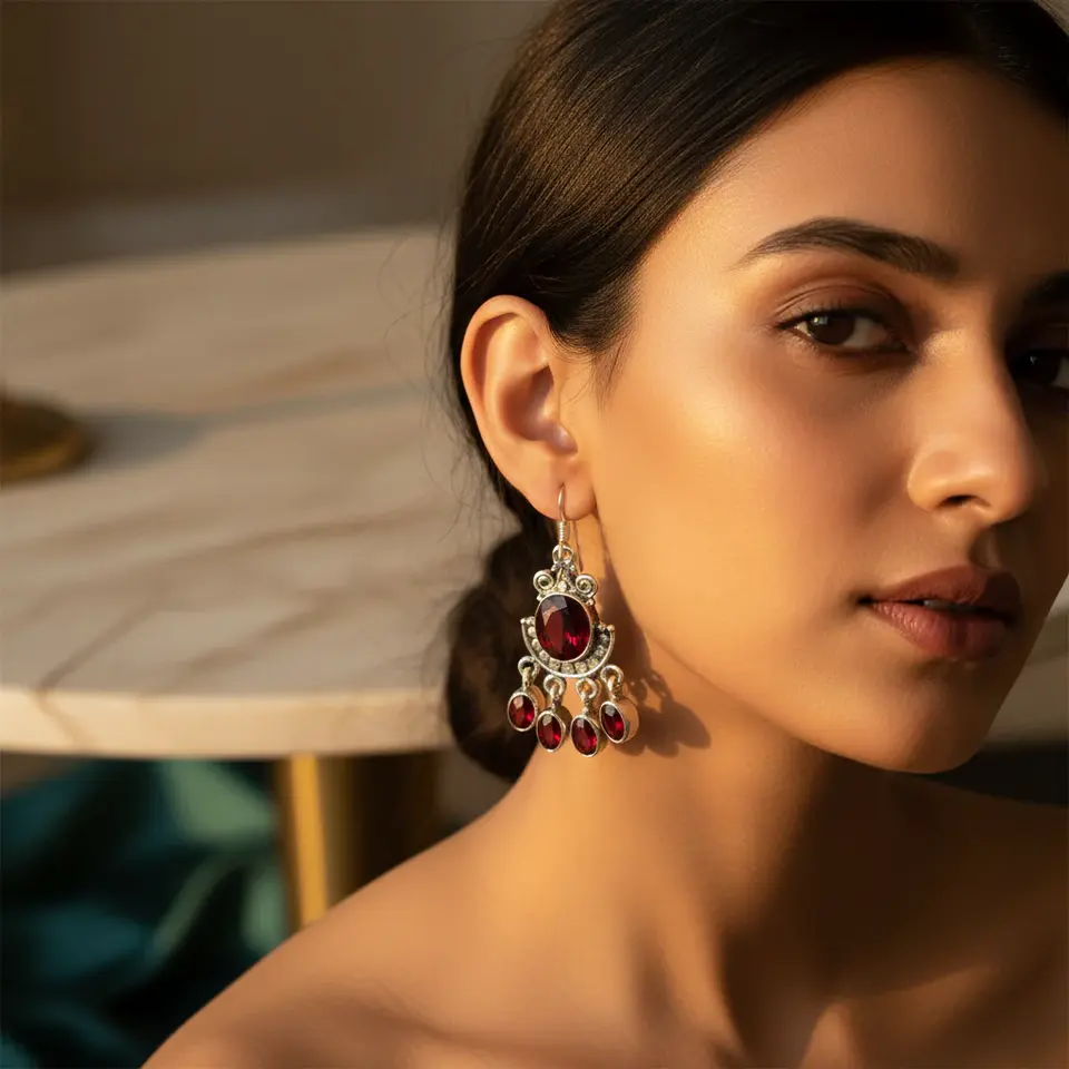 Women's Vintage 925 Silver Ruby Dangle Earrings Gold Plated with Pearl and Diamond for Weddings and Parties