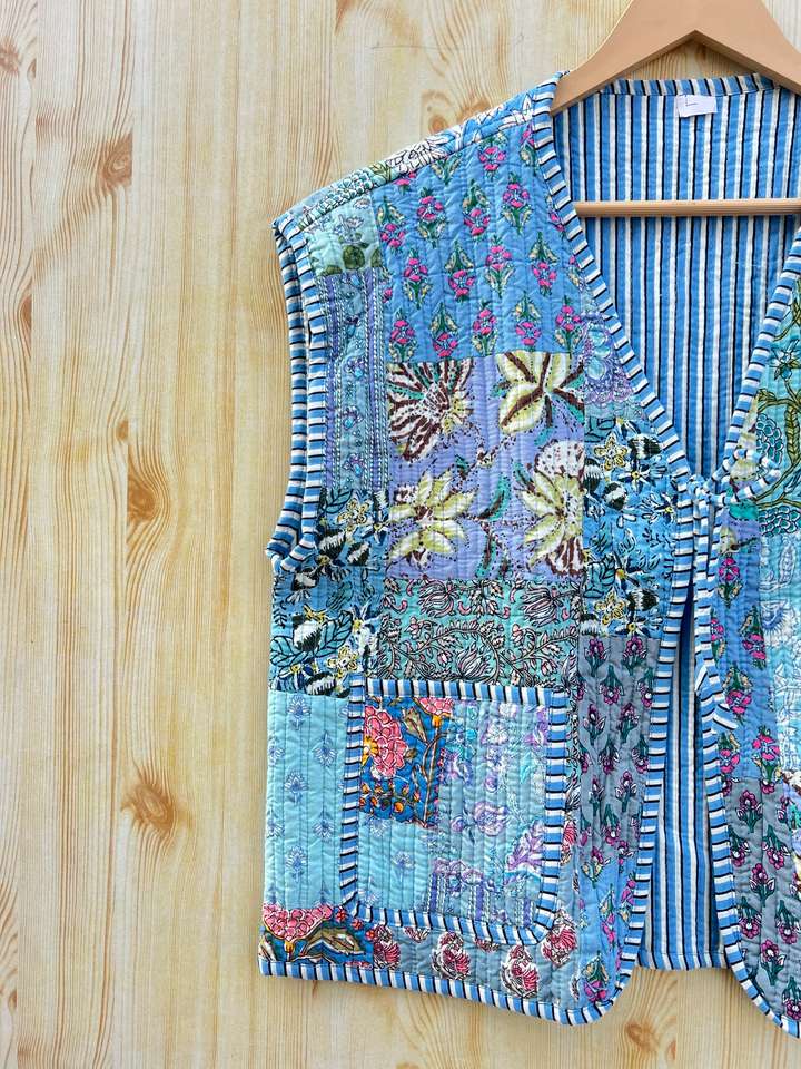 Product name:Cotton Quilted Patchwork Vest Coat