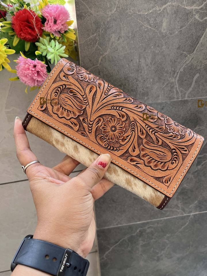 Product Name:Women's Cowhide Fur Leather clutch Hand Tooled Clutch
