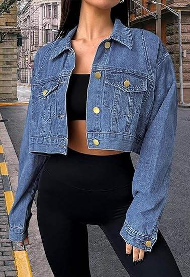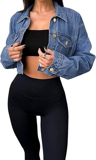 Veste en jean délavée et déchirée pour femme, manches longues, boutonnée, coupe courte