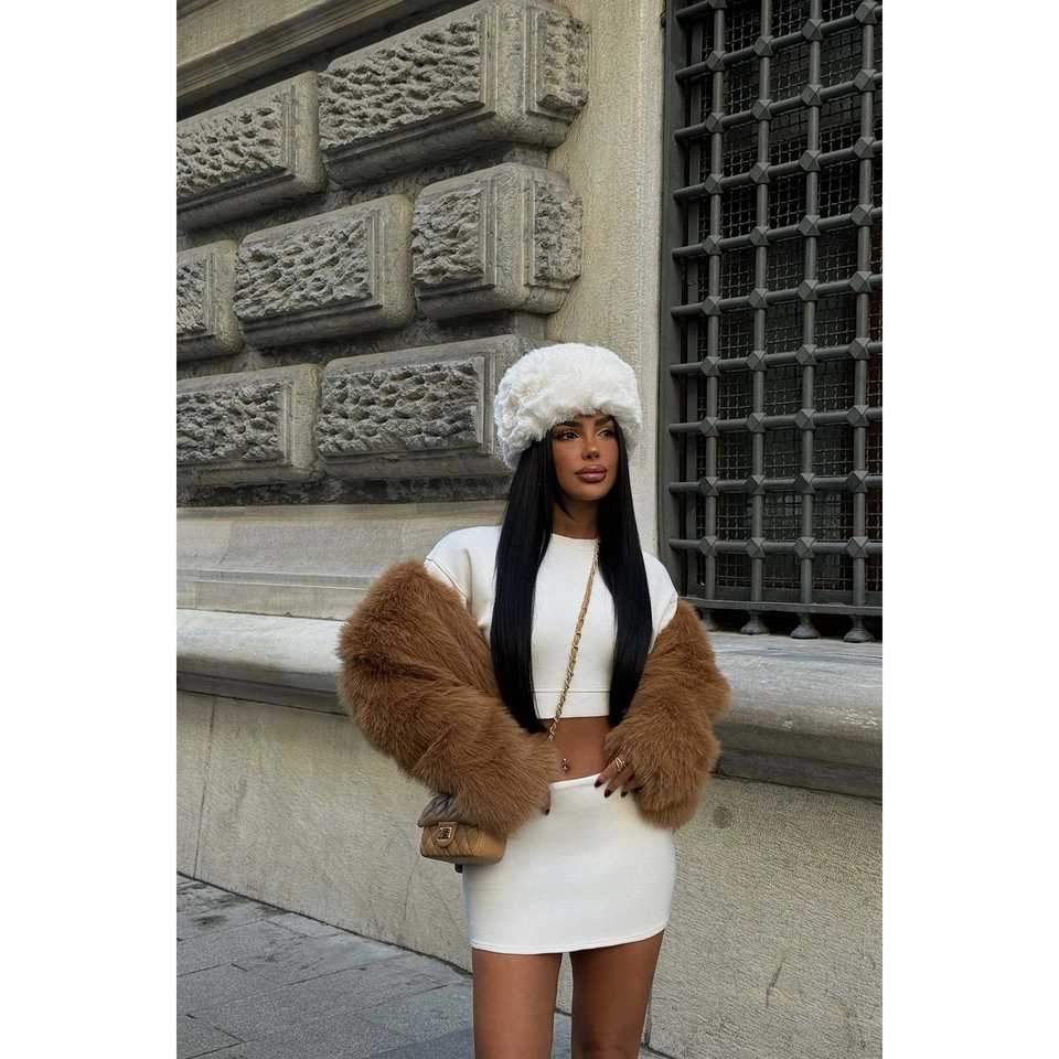 Women's White Faux Fur Cap Hat Elegant Accessory for Coats