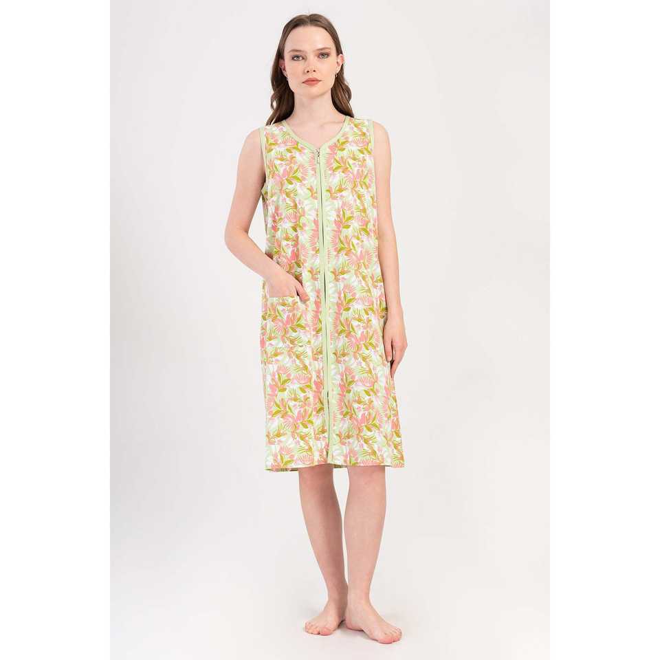 Robe de maison pour femme à bretelles larges et poches zippées, avec un design chic de poches zippées