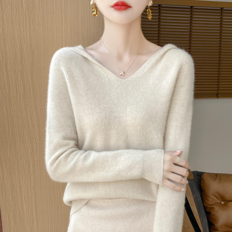 Women's Winter Casual Wool Knitted Sweater Half Turtleneck Double-Ply Thickened Loose Raglan Bottoming Top with Front Logo