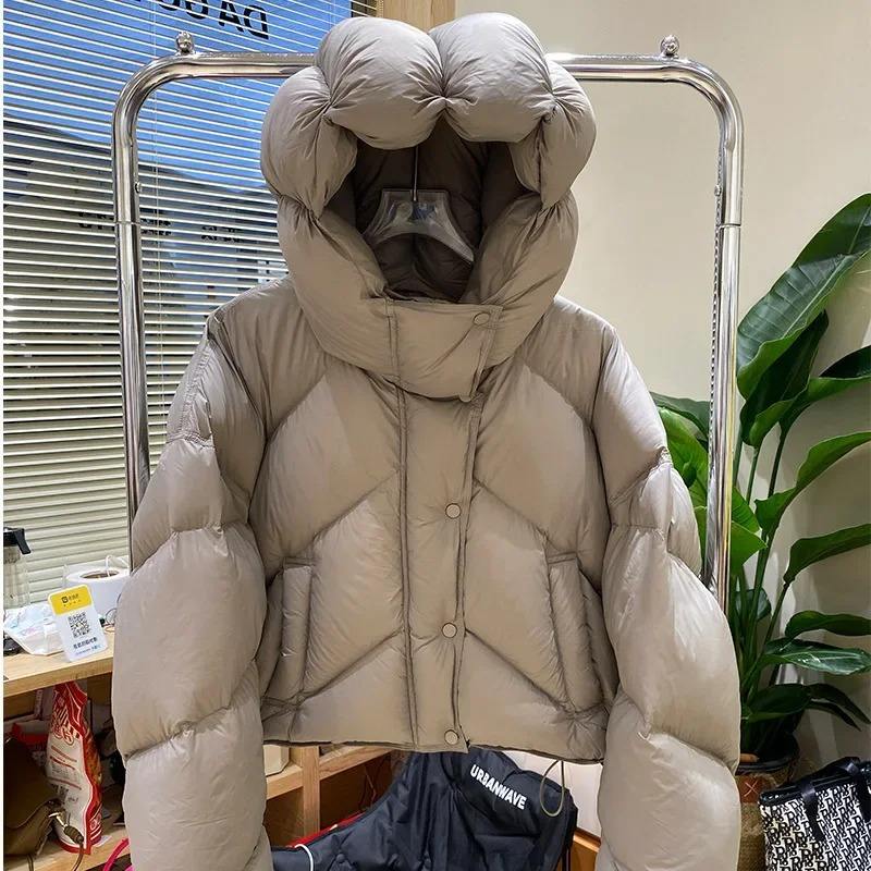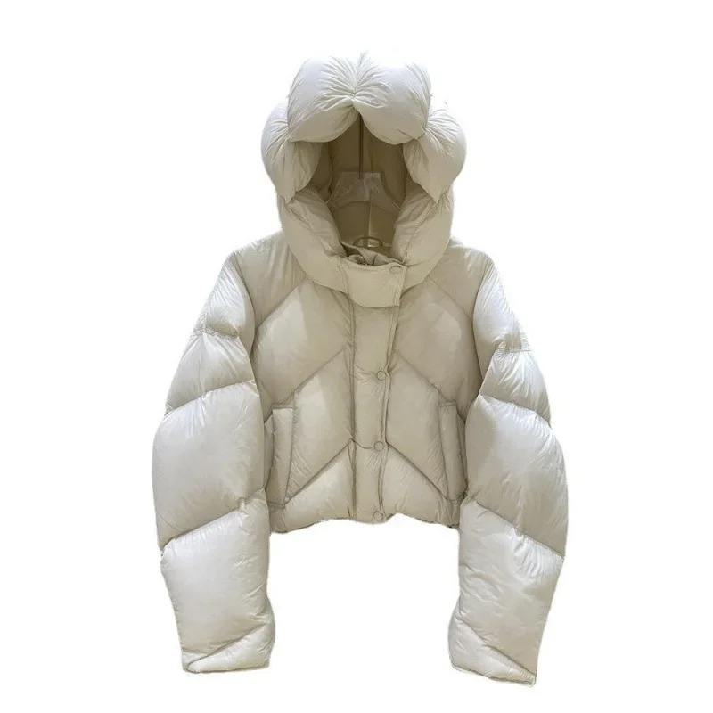 Femmes XL grande taille respirant hiver recadrée à capuche Bomber veste épaissie polaire imprimé tissu minceur bouffant coupe ample